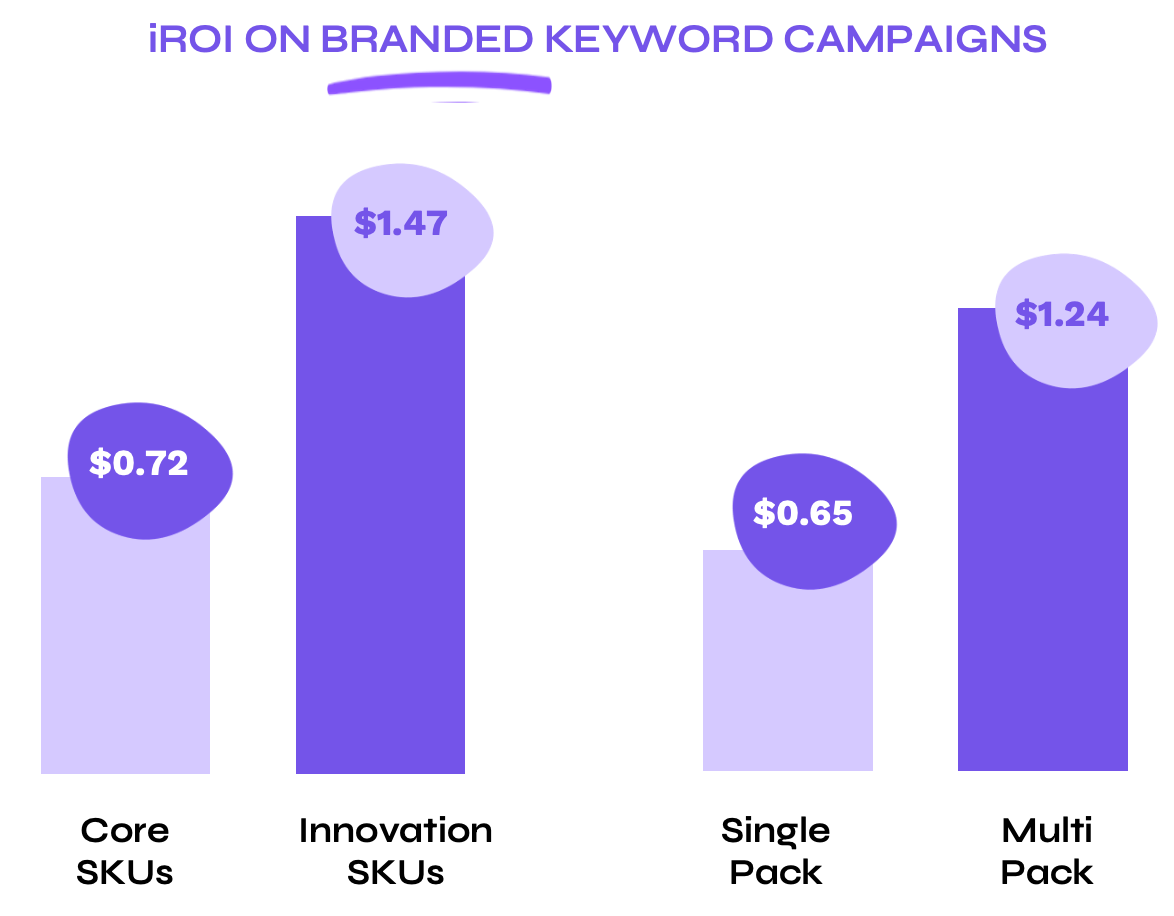 Based on these learnings, the brand continued to spend on branded keywords, but shifted dollars from campaigns supporting core SKUs into those supporting their innovation products.